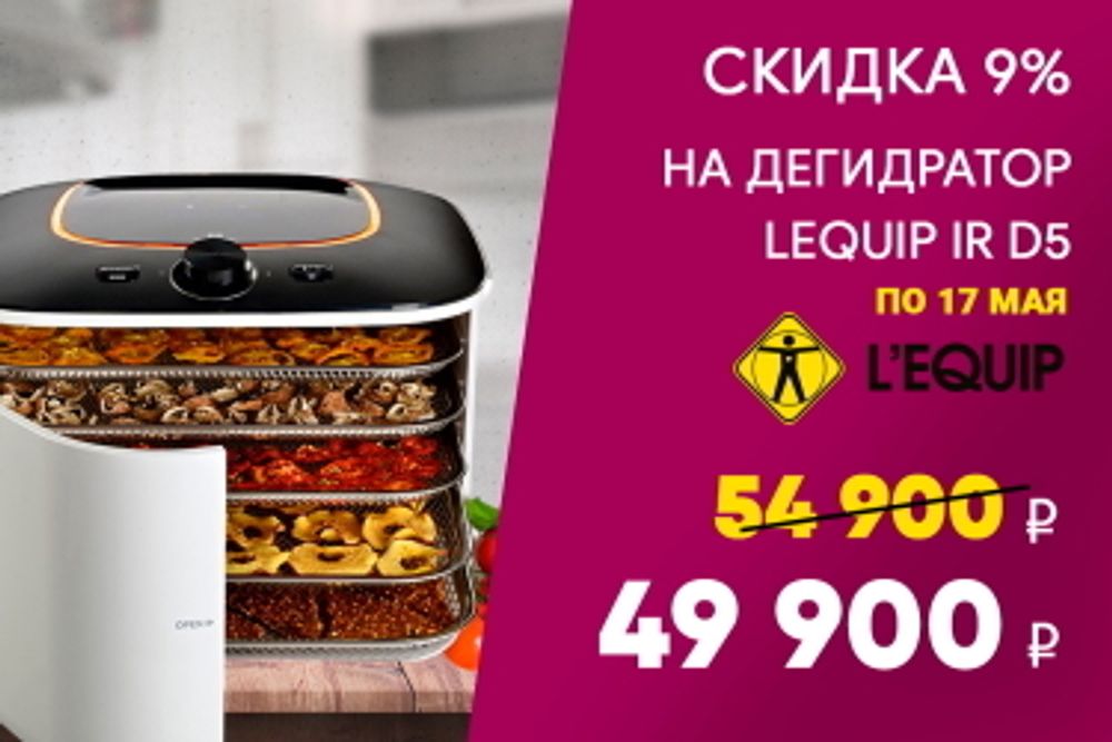 Друзья, сообщаем, что до 17 мая Вы можете купить качественные дегидраторы с выгодой до 20 000 рублей! Встречайте лето с заботой о своём здоровье – покупайте технику для правильного питания в магазине «Все Соки»! В данной акции участвуют горизонтальные дегидраторы L’equip IR D5 и Excalibur RES12. Современные сушилки легко справятся с заготовками, приготовлением натуральной пастилы, веганского мармелада и полезных низкокалорийных хлебцев.