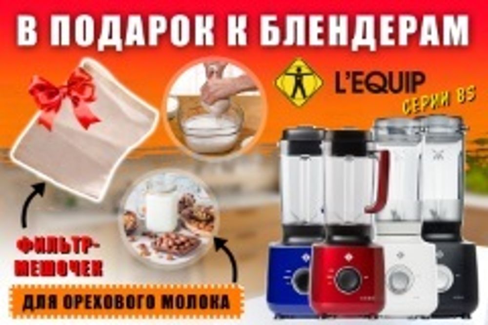 Мы рады сообщить, что полюбившийся всем блендер BS5 Cube от южнокорейского бренда L’equip снова доступен во всех цветах – чёрный, белый, рубиновый и сапфировый. Более того, только в марте при покупке любого блендера Леквип серии BS, Вы получаете в подарок замечательный многоразовый мешочек для орехового молока. Теперь не нужно использовать марлю – производитель позаботился о Вашем удобстве. Но и это ещё не все новости. В своё время мы анонсировали появление в продаже уникальных шумоизоляционных колпаков для блендеров Лекуип. И вот, наконец, они доступны для заказа!