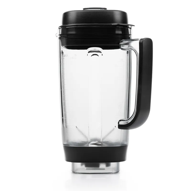 В комплект к чаше входят: удобная крышка с колпачком, тритановый стакан, блок стальных ножей с титановым напылением, практичный толкатель, а также уплотнитель и фиксатор блока ножей.