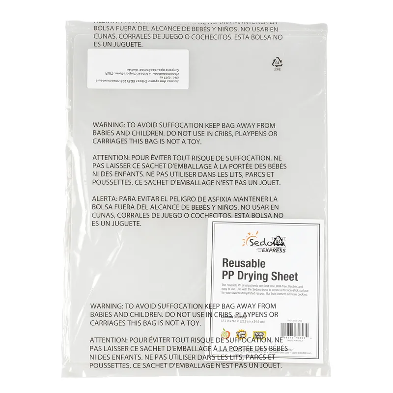 Пластиковые (полипропиленовые) листы от компании Tribest разработаны специально для приготовления хлебцев в дегидраторе Sedona Express. Предназначены для многократного использования. Три листа в комлекте.