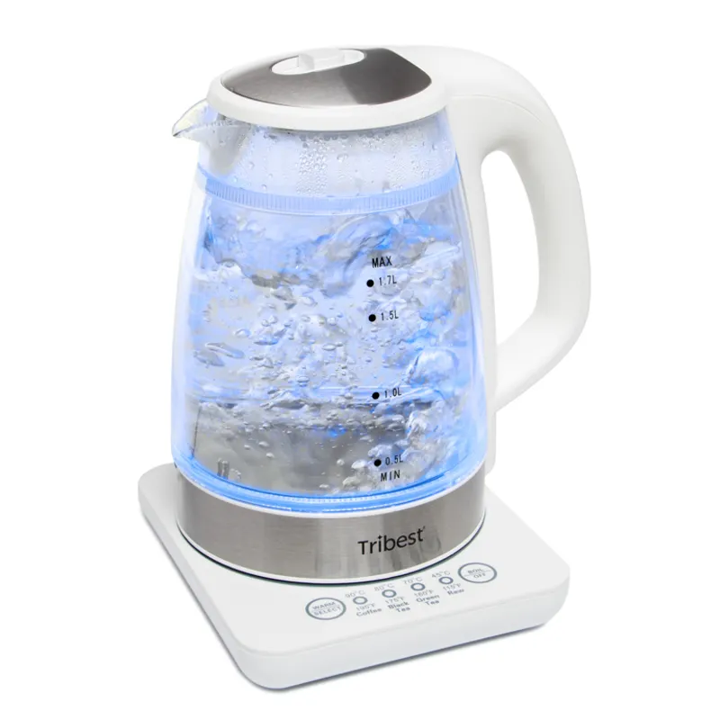 Пользуйтесь надежной техникойКорпус чайника Tribest GKD-450 сконструирован по уникальной технологии и имеет двойные стенки. Внутренняя сделана из стекла, чтобы при нагреве в воду не попадали вредные химические примеси. А для безопасной эксплуатации прибора внешняя стенка сделана из BPA-free пластика. Благодаря инновационному решению пользователь защищен от случайных ожогов при соприкосновении с корпусом. К тому же это способствует экономии электроэнергии, т.к. остывание воды происходит медленнее. Управление прибором осуществляется кнопками «Boil/OFF» и «Warm/Select», расположенными на подставке. Можно не переживать, если на подставку попадёт вода, т.к. все кнопки имеют влагозащищенную конструкцию. Tribest GKD-450 оснащен предохранительным устройством, которое автоматически отключает нагревательный элемент, если прибор случайно включится, если емкость пустая или если вода выкипит. Синие светодионые огни, расположенные в специальном герметичном корпусе донной части корпуса, являются индикаторами работы. |