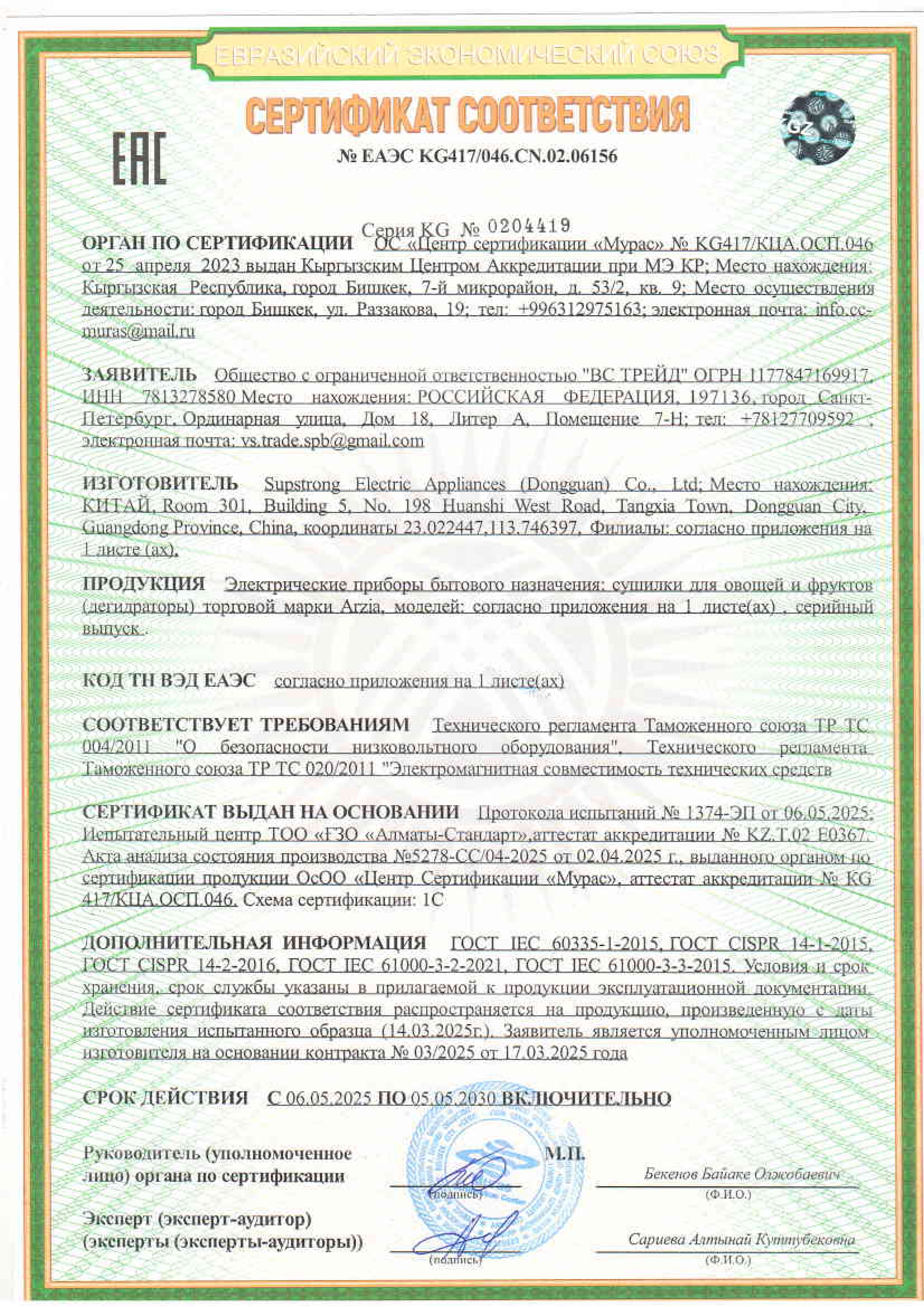 Максимум возможностей: комплектация дегидратораДегидратор Arzia D01 оснащён обширной комплектацией, которая включает всё для качественной и комфортной сушки продуктов. В комплектацию аппарата входят: