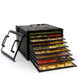 Коммерческий (промышленный) дегидратор Excalibur Premium 10 (EXC10ELF) – это устройство, которое подходит для использования на крафтовом производстве или в ресторане. Стенки прибора и лотки выполнены из качественной нержавеющей стали. Общий объём камеры составляет 48,2 л, а площадь сушки – 1,44 м², таким образом EXC10ELF является одним из самых вместительных дегидраторов из всех, представленных на отечественном рынке.
