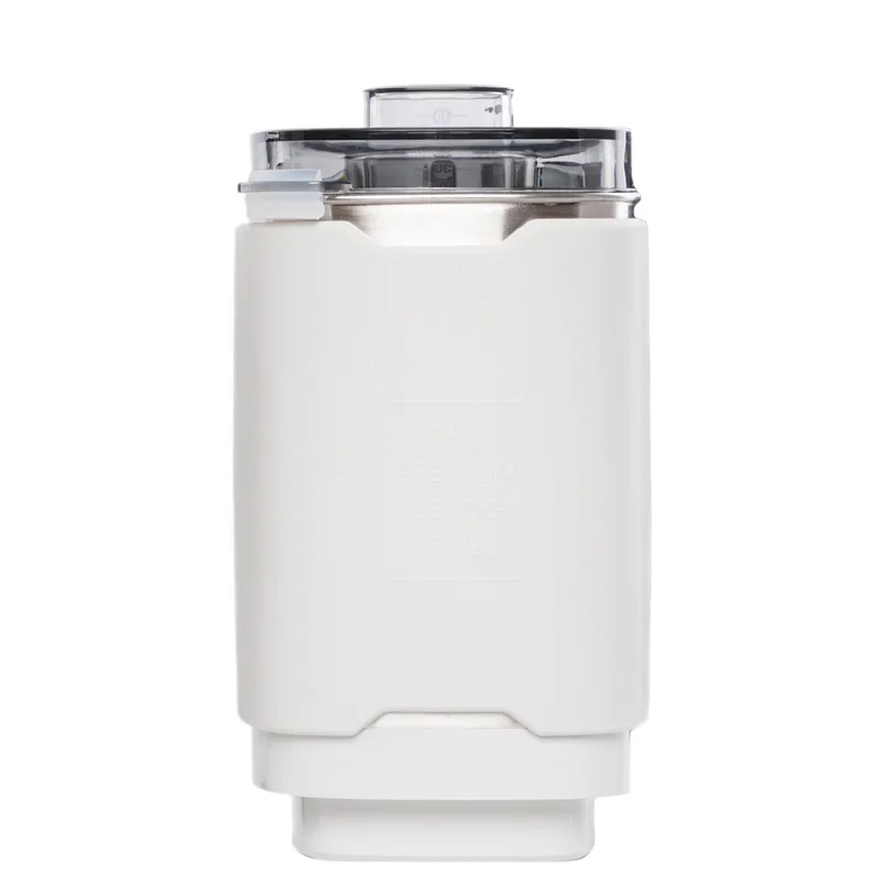 Дополнительный стакан сделан из пищевой нержавеющей стали AISI 316 и предназначен для измельчения сухих продуктов: специй, сушёных трав, злаков, зёрен кофе. Объём чаши составляет 900 мл, поэтому она отлично подойдёт для смешивания небольших порций продуктов, приготовления напитков, горячих крем-супов и детского питания, а также измельчения семян в муку и орехов до состояния однородной пасты. Силиконовый кожух, покрывающий чашу, сообщает ей дополнительную шумо-, термо- и виброизоляцию.