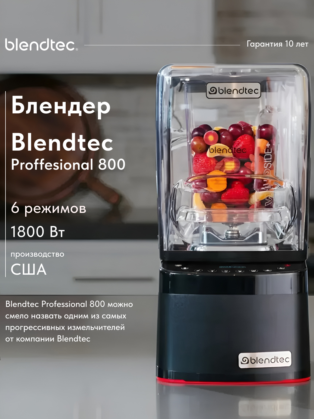 Купить мощный стационарный блендер из США Blendtec Professional 800 с беспрецедентной 10-летней гарантией и 1 годом бесплатного сервисного обслуживания для коммерции Вы можете в интернет-магазине «Все Соки».