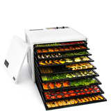 Мощный и надежный дегидратор Lux 9SS от американского бренда Excalibur сочетает в себе лучшие характеристики более ранних моделей, а также инновационные методики сушки овощей, фруктов, зелени, йогуртов, рыбы и мяса. Технология горизонтального обдува позволяет заготавливать продукты без потери полезных энзимов и витаминов. Корпус, дверь и лотки выполнены из нержавеющей стали марки 304, поэтому он намного прочнее приборов из пластика. При мощности в 600 Вт устройство демонстрирует малые показатели шума – до 55 Дб.