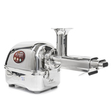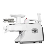 Надёжная и многофункциональная соковыжималка для коммерции с двумя полностью металлическими шнеками – как у всем известного Ангела, но при более приемлемой стоимости. Шнеки – не единственное обновление аппарата. Также была усилена передняя отжимная корзина и улучшено охлаждение двигателя. Новинка для белоснежной кухни, которая всегда содержится в чистоте. В корпусе предусмотрен отдельный отсек для толкателя.