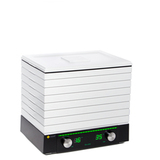 Express SD-6780 от торгового бренда Tribest является многофункциональным дегидратором с 11 металлическими лотками (10 открытыми и 1 закрытым), изготовленными из прочной нержавеющей стали, которые не деформируются под нагрузкой, а непревзойденное качество корейской сборки позволило установить на сушилку срок гарантии в 5 лет. Модель имеет небольшие размеры (площадь установки – всего 0,1 м²), что дает возможность устанавливать ее даже на кухнях с маленькой квадратурой. Эта модель отличается небольшими габаритами, лаконичным дизайном, низким энергопотреблением и продолжительным сроком службы.