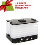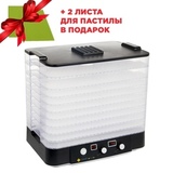 Высота дегидратора – всего 28 см, он не займёт много места на кухне. Но при необходимости Вы можете докупить дополнительные лотки, чтобы сушить больше продуктов за раз. В комплект входят 5 лотков, сетчатый лист для сушки и лист для пастилы.