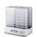 Дегидрация – оптимальный способ подготовки пищевых продуктов к длительному хранению, не влияющий на их полезные свойства. При сушке из фруктов и овощей удаляется только влага, а витамины и необходимые нашему организму микроэлементы остаются. Чтобы процесс сушки был успешным, его необходимо постоянно контролировать. Доверив это занятие дегидратору L'equip D-Cube LD-9013, можно не волноваться за результат. Благодаря встроенному термостату ликвидируются малейшие отклонения от установленной Вами температуры, а мощный вентилятор равномерно распределяет нагретый воздух по всей площади лотков.