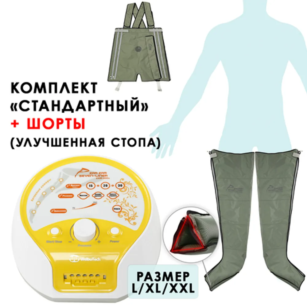 Аппарат для прессотерапии WelbuTech Zam-200S + Манжеты для ног (новый тип стопы) + Массажные Шорты, размер XL