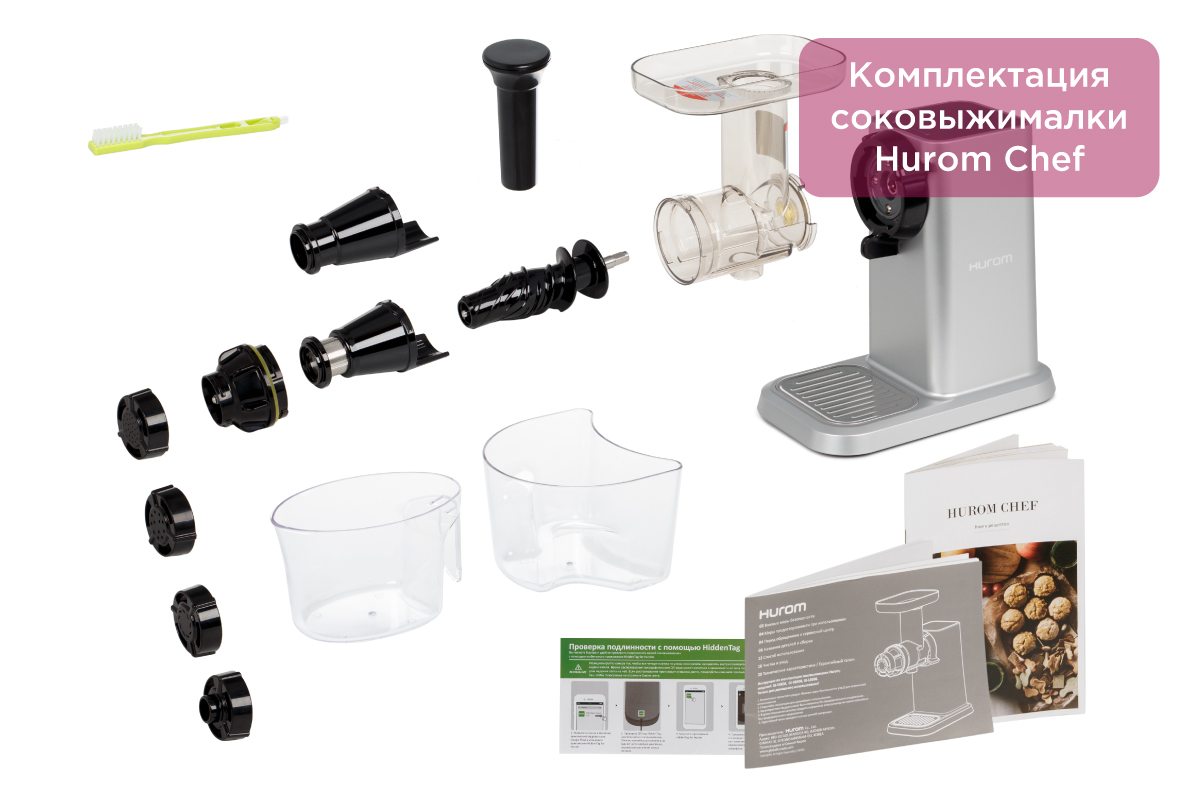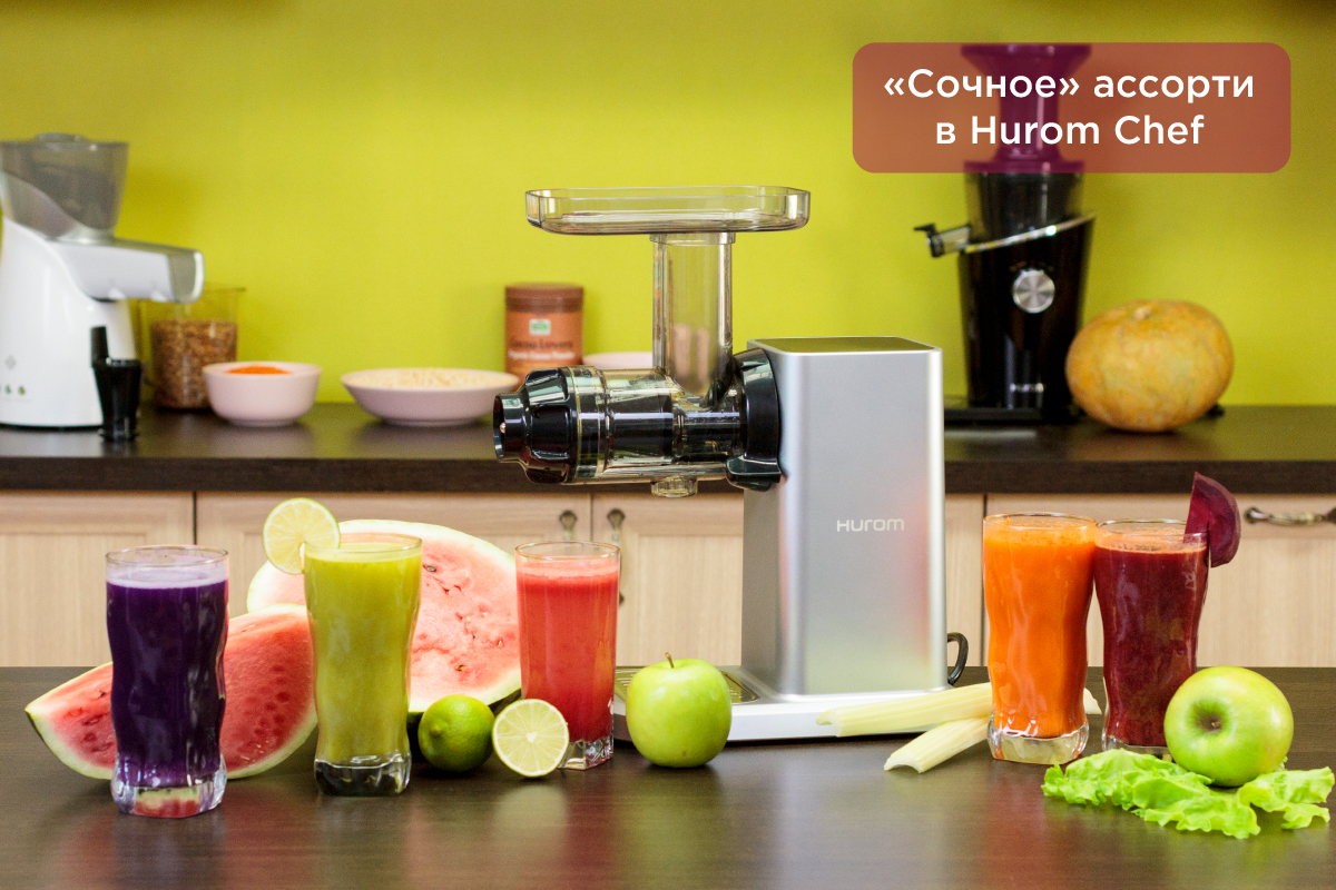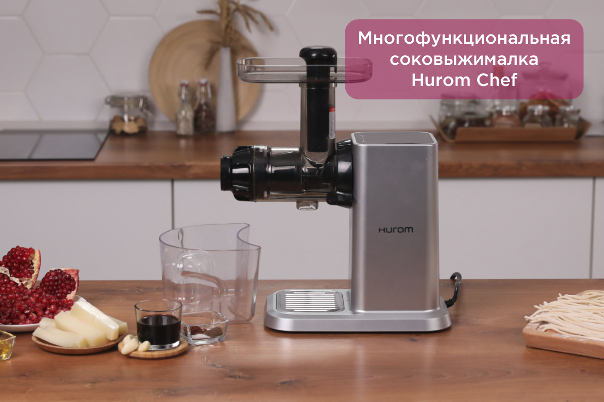 Hurom Chef позволит Вам значительно расширить свой рацион вкусными и полезными напитками, блюдами и десертами без вредных добавок, сахара, консервантов и искусственных красителей.