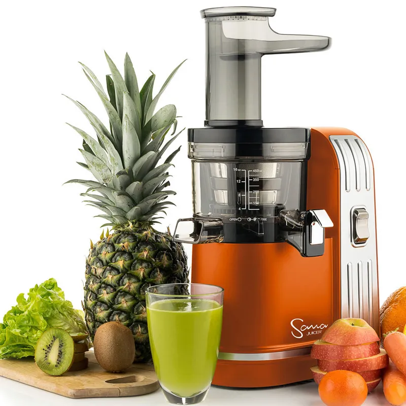 Чешская компания Sana, флагман среди европейских брендов техники для здорового питания с производством в Южной Корее, представляет новинку 2018 года. Это вертикальная шнековая соковыжималка премиум-класса Sana Juicer EUJ-828. Прибор выпускается в оранжевом пластиковом корпусе и впечатляющем ретро-дизайне. За стильным внешним обликом скрываются ультрасовременные материалы, не вступающие в контакт с пищевыми продуктами, и последние достижения корейских инженеров в области технологии медленного отжима сока. В комплектацию соковыжималки входят 2 сетки (для соков с мякотью и без неё), а также насадка для приготовления домашнего сыроедческого мороженого. Аппарат Sana-828 даёт возможность готовить соки из фруктов и цитрусовых, овощей и корнеплодов, листовой и волокнистой зелени, витграсса. В спектр возможностей соковыжималки входят многокомпонентные и зелёные соки.